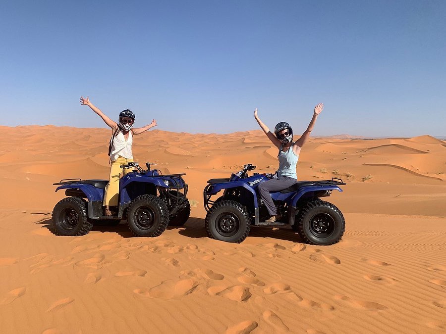 They are already in the desert! After breakfast, you will be picked up by 4×4 to explore these lands. Visiting a family of Gnawas or Bambara musicians, descendants of the slaves who came from Black Africa, who will delight you with their traditional music. The entire route will be on a track (130 km), bordering the dunes. You will see the two oases of Merzouga, the MIFISS mines, the desert plateaus and return to the hotel mid-afternoon. They will change the 4×4 for the 8×8 (they are the dromedaries) that will take them to the heart of the desert. They will make a stop to watch the sunset. Upon arrival at the haima camp, an excellent and restorative tea awaits you, an exquisite Berber dinner and all of this accompanied by the music of the tam-tam (drums). You are going to enjoy a unique and unforgettable night, thanks to the large number of stars that populate the desert nights. They will sleep in Berber haimas.